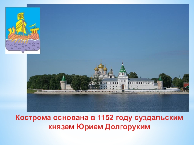 Слайд 26Кострома основана в 1152 году суздальским князем Юрием Долгоруким