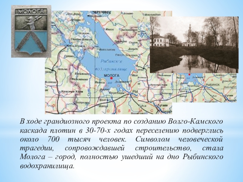 годах переселению подверглись около 700 тысяч человек. Символом человеческой трагедии, сопровождавшей строительство, стала Молога – город, полностью ушедший на дно Рыбинского водохранилища.