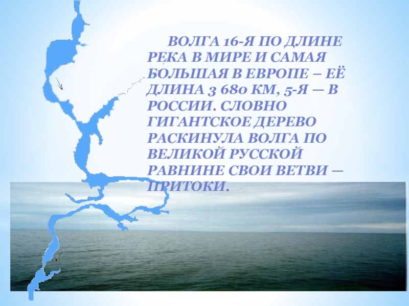 Европе – её длина 3 680 км, 5-я — в России. Словно гигантское дерево раскинула Волга по великой Русской равнине свои ветви — притоки.