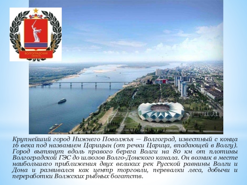 Слайд 33Крупнейший город Нижнего Поволжья — Волгоград, известный с конца 16 века