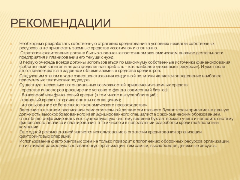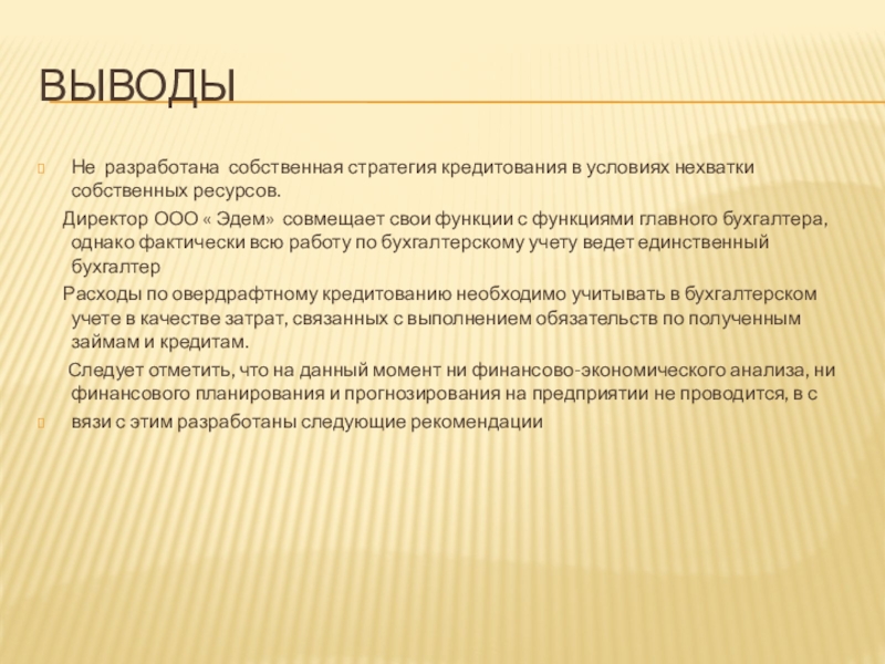 6. Дать рекомендации по совершенствованию использования кредитов и займов в ООО « Эдем»