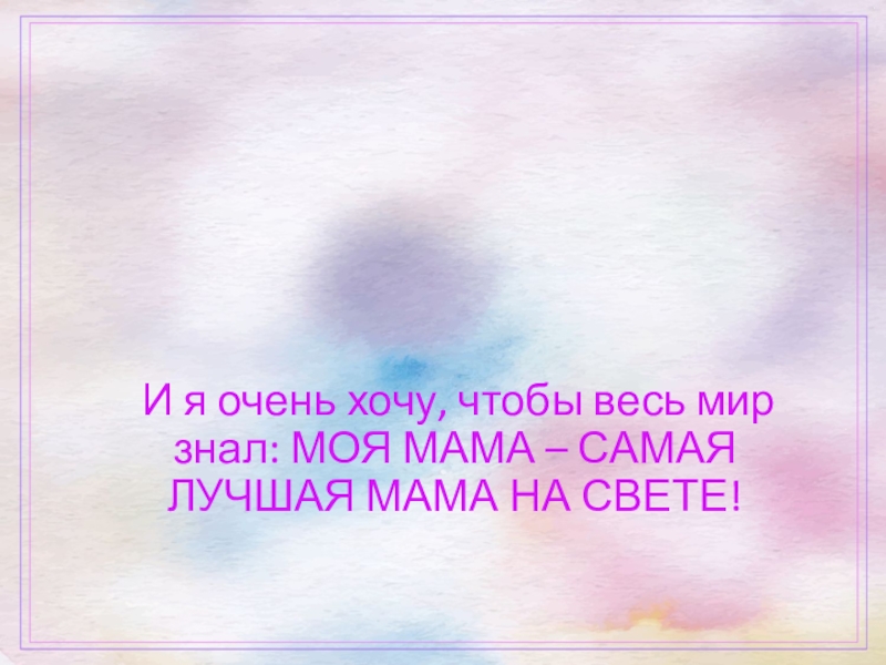 И я очень хочу, чтобы весь мир знал: МОЯ МАМА – САМАЯ ЛУЧШАЯ МАМА НА