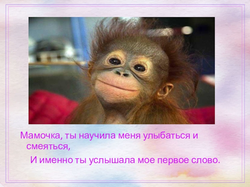 Мамочка, ты научила меня улыбаться и смеяться, И именно ты услышала мое первое слово.
