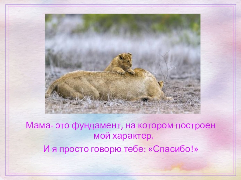 Мама- это фундамент, на котором построен мой характер.И я просто говорю тебе: «Спасибо!»