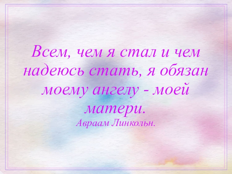 Всем, чем я стал и чем надеюсь стать, я обязан моему ангелу - моей матери. Авраам Линкольн.