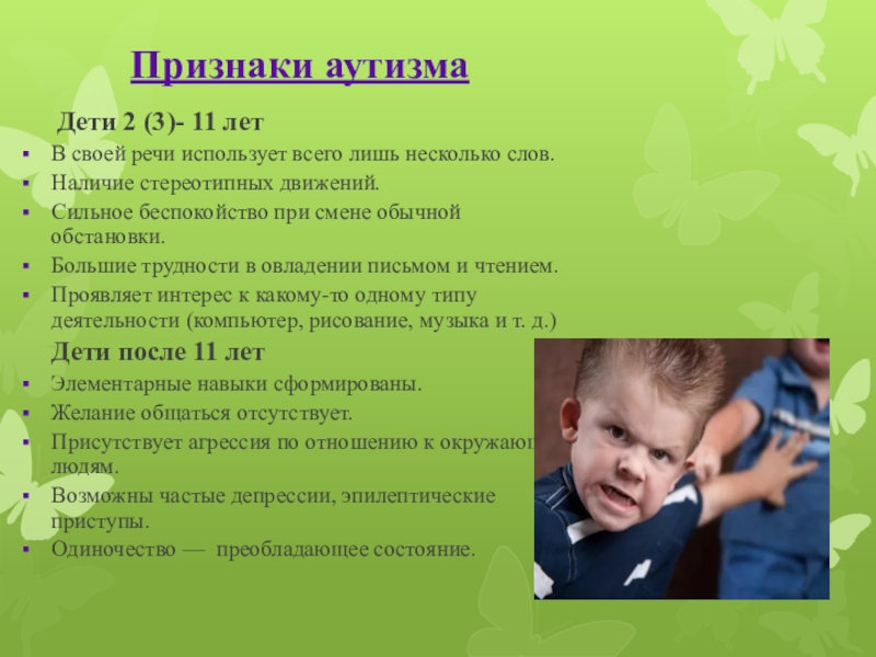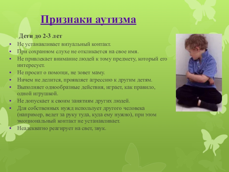 Слайд 8Признаки аутизма