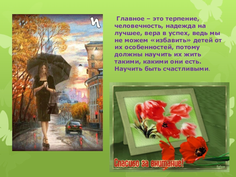 Слайд 25 Главное – это терпение, человечность, надежда на лучшее, вера в