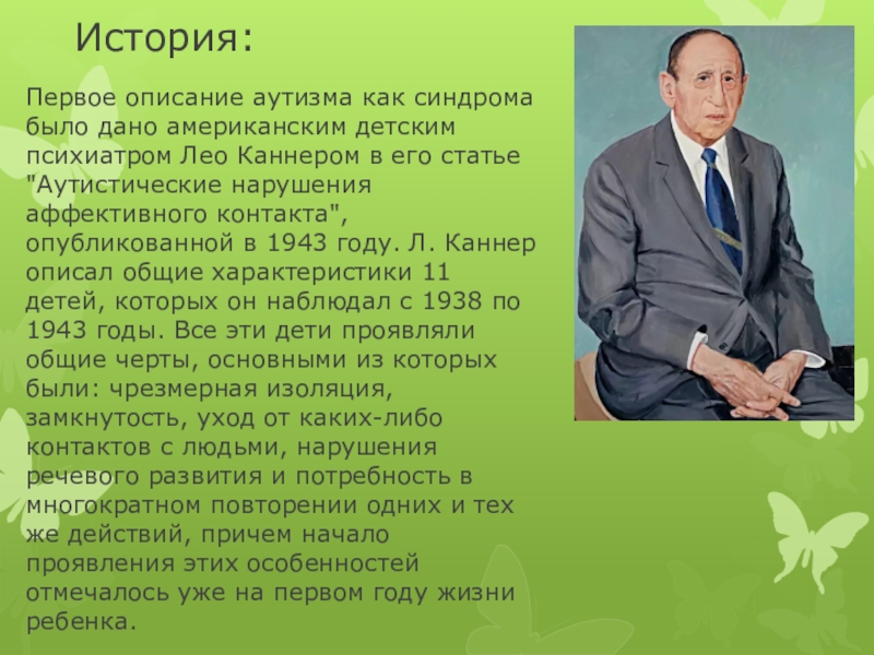 Первое описание аутизма как синдрома было дано американским детским психиатром