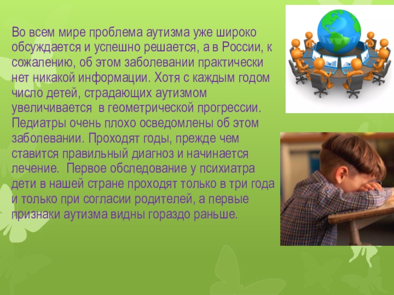Слайд 3Во всем мире проблема аутизма уже широко обсуждается и успешно решается,