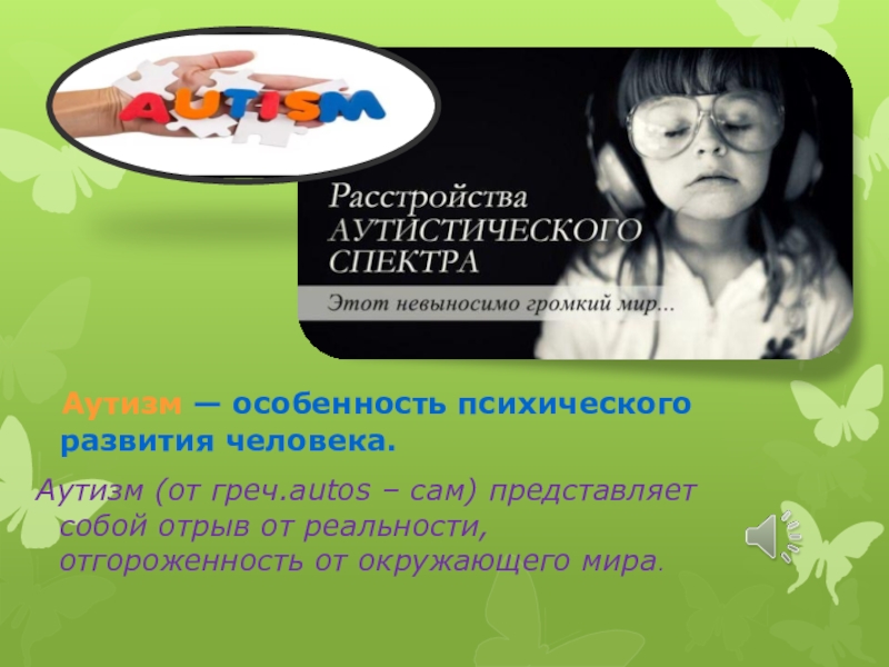 Слайд 2 Аутизм — особенность психического развития человека.