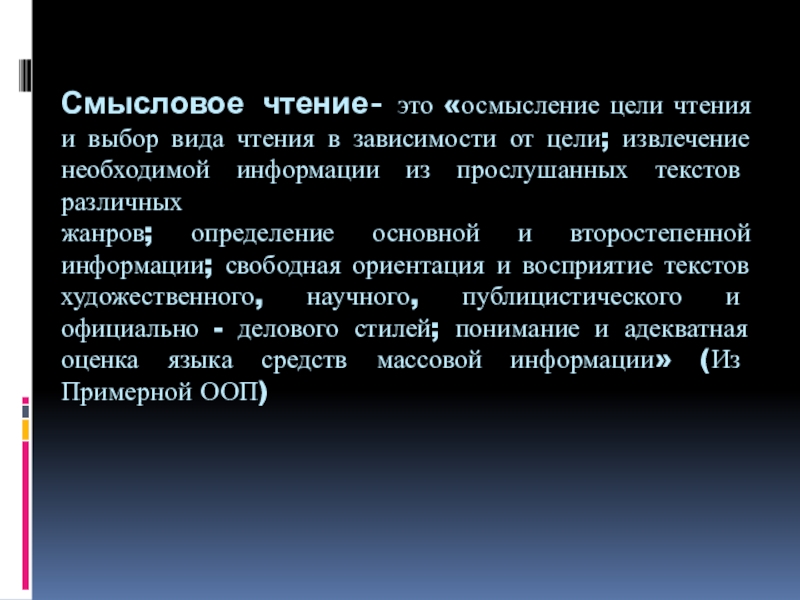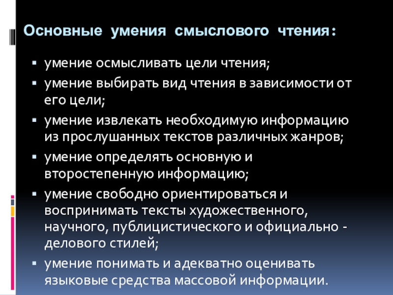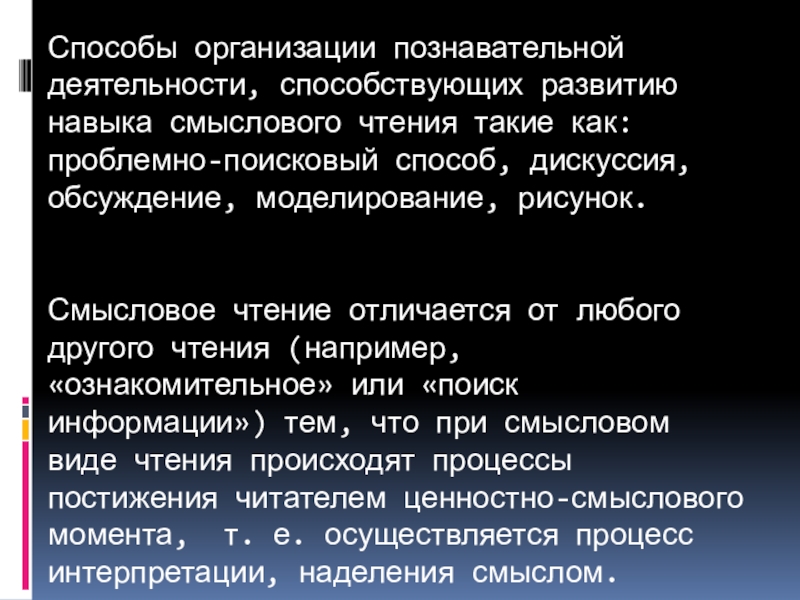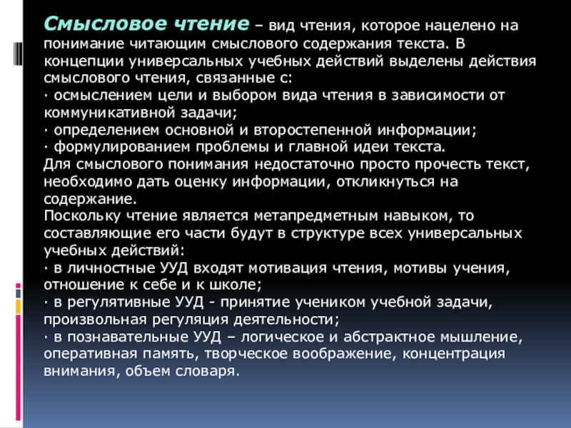 Смысловое чтение – вид чтения, которое нацелено на понимание читающим смыслового содержания