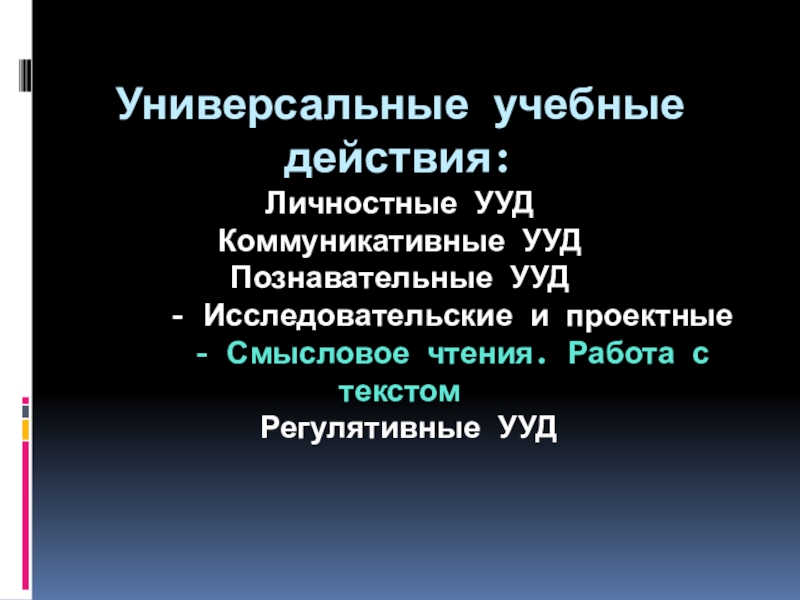 · в личностные УУД входят мотивация чтения, мотивы учения, отношение к себе и к школе;
