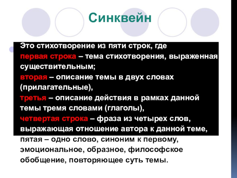пятая – одно слово, синоним к первому, эмоциональное, образное, философское обобщение, повторяющее суть темы.