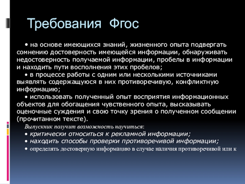 информации, обнаруживать недостоверность получаемой информации, пробелы в информации и находить пути восполнения этих пробелов;