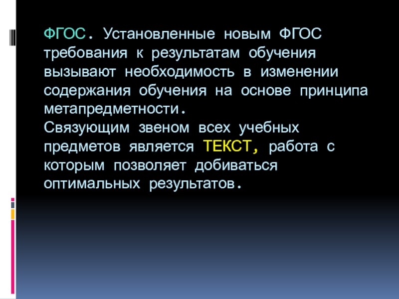 Связующим звеном всех учебных предметов является ТЕКСТ, работа с которым позволяет добиваться оптимальных результатов.