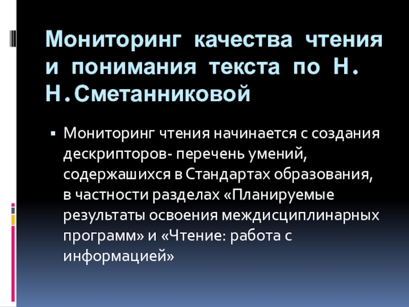 создания дескрипторов- перечень умений, содержашихся в Стандартах образования, в частности разделах «Планируемые результаты освоения междисциплинарных программ» и «Чтение: работа с информацией»