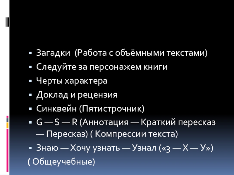 Слайд 17Способы организации познавательной деятельности, способствующих развитию навыка смыслового чтения такие как: