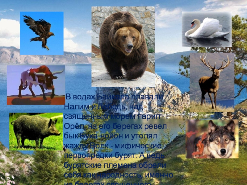 Слайд 3 В водах Байкала плавали Налим и Лебедь, над священным морем