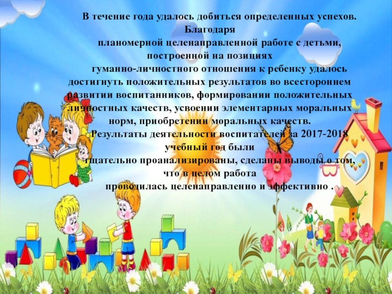 Работа группы осуществлялась исходя из основных годовых задач и в соответствии с годовым планом работы. Образовательно-воспитательный процесс осуществлялся на основании общеобразовательной программы дошкольного образования «От рождения до школы» Н.Е Вераксы , Т.С Комаровой, общеобразовательной программы ДОУ, рабочей программы ДОУ, рабочей программы средней группы на 2016 -2017 учебный год.