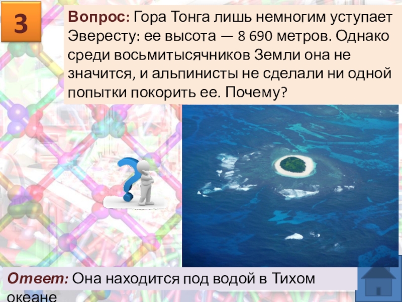 Ответ: Она находится под водой в Тихом океане