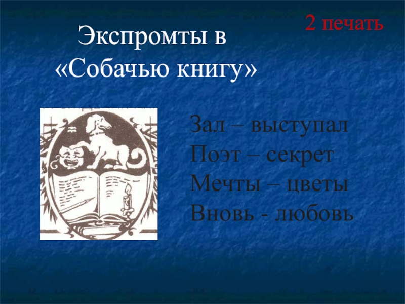 Слайд 3 Экспромты в «Собачью книгу»