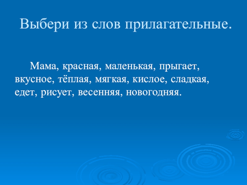 Слайд 22Выбери из слов прилагательные.