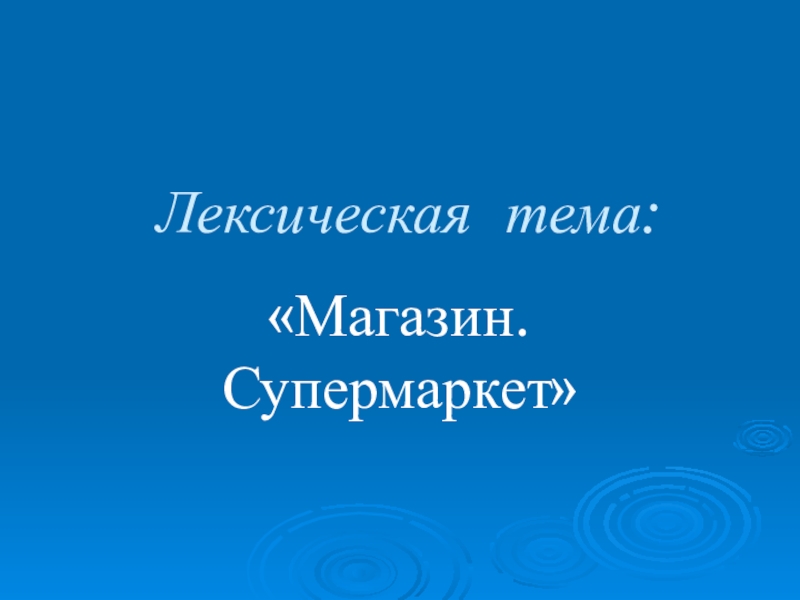 Лексическая тема:«Магазин. Супермаркет»