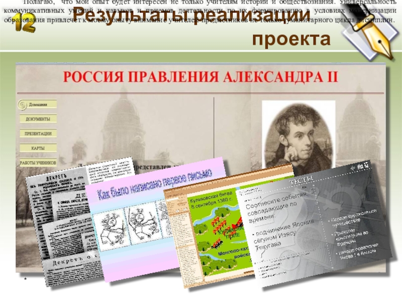 Полагаю, что мой опыт будет интересен не только учителям истории и обществознания. Универсальность коммуникативных умений и навыков и приемов деятельности по их формированию в условиях модернизации образования привлечет к моему опыту внимание учителей-предметников не только гуманитарного цикла дисциплин.
