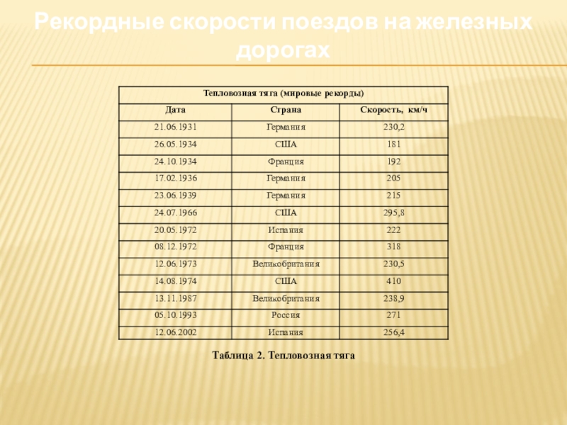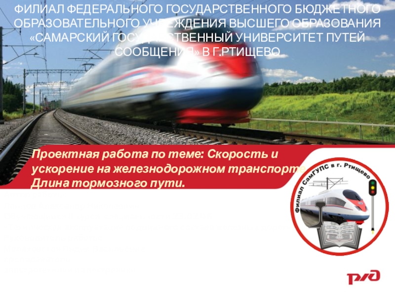 Проектная работа по теме: Скорость и ускорение на железнодорожном транспорте. Длина тормозного пути.