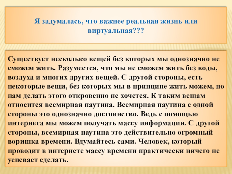 Я задумалась, что важнее реальная жизнь или виртуальная???