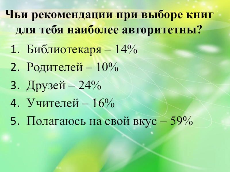 Слайд 8Чьи рекомендации при выборе книг для тебя наиболее авторитетны?