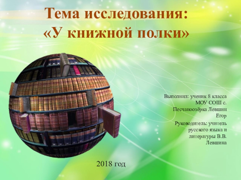 Выполнил: ученик 8 класса МОУ СОШ с.Песчаноозёрка Левшин Егор