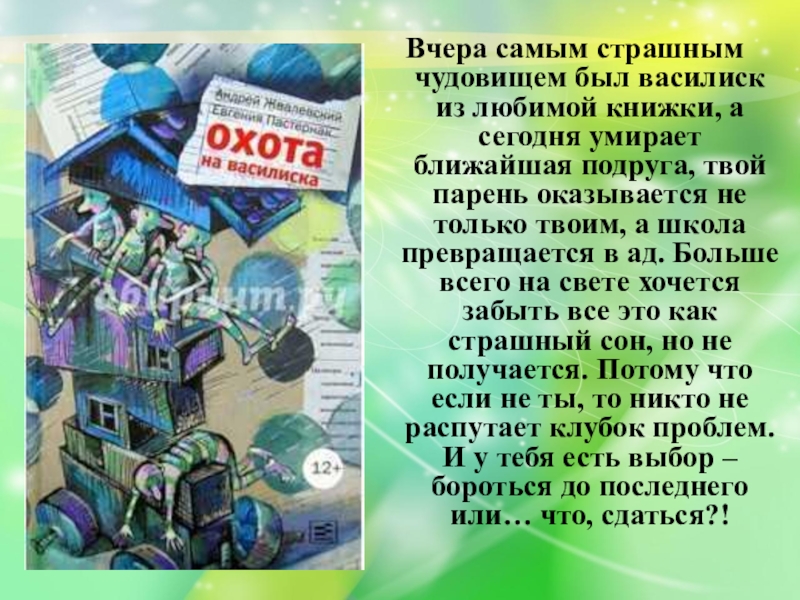 Слайд 21Вчера самым страшным чудовищем был василиск из любимой книжки, а сегодня