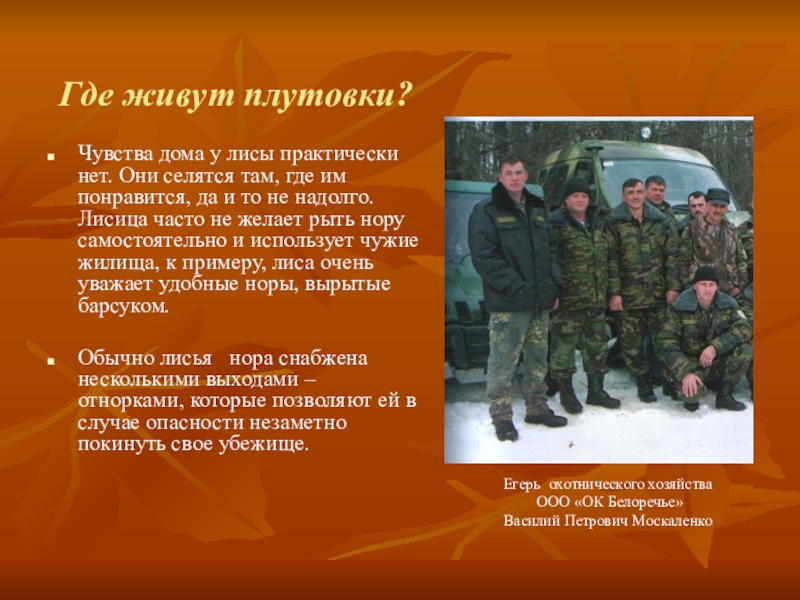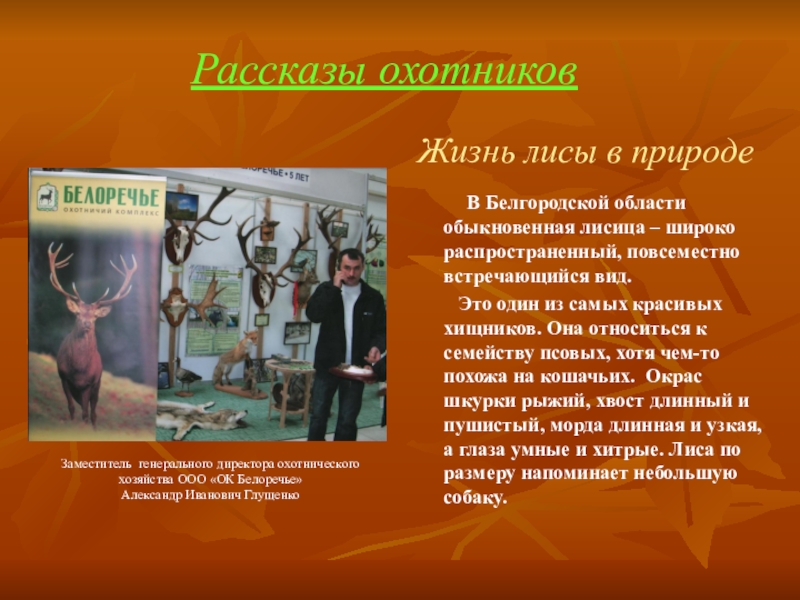 Заместитель генерального директора охотнического хозяйства ООО «ОК Белоречье»