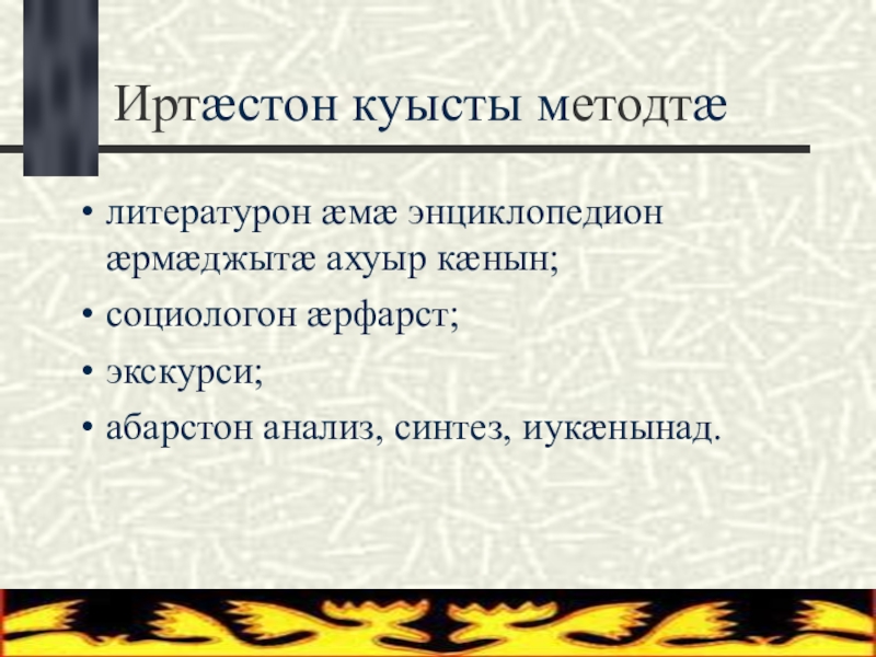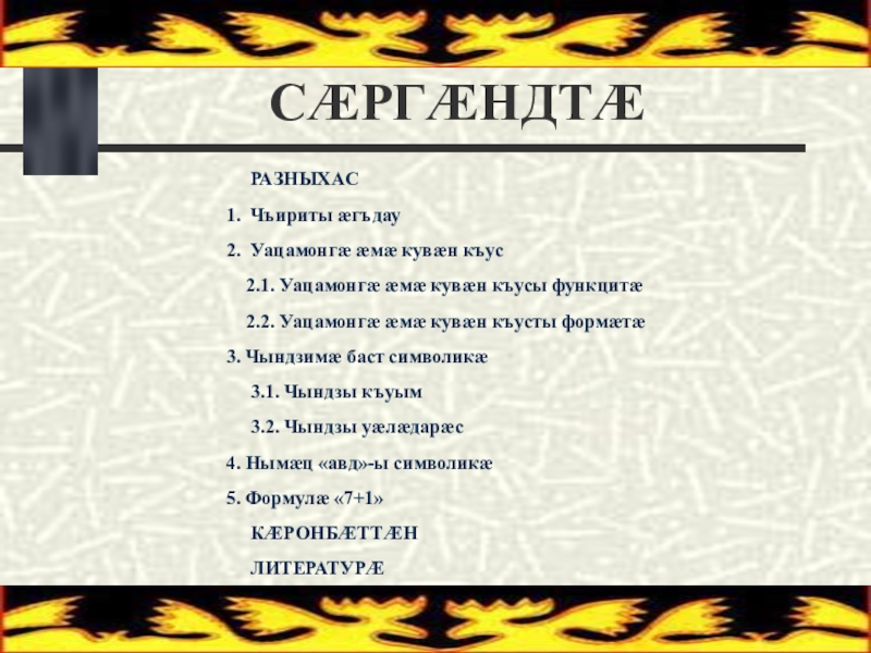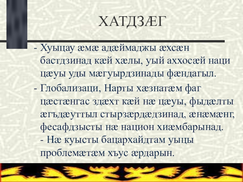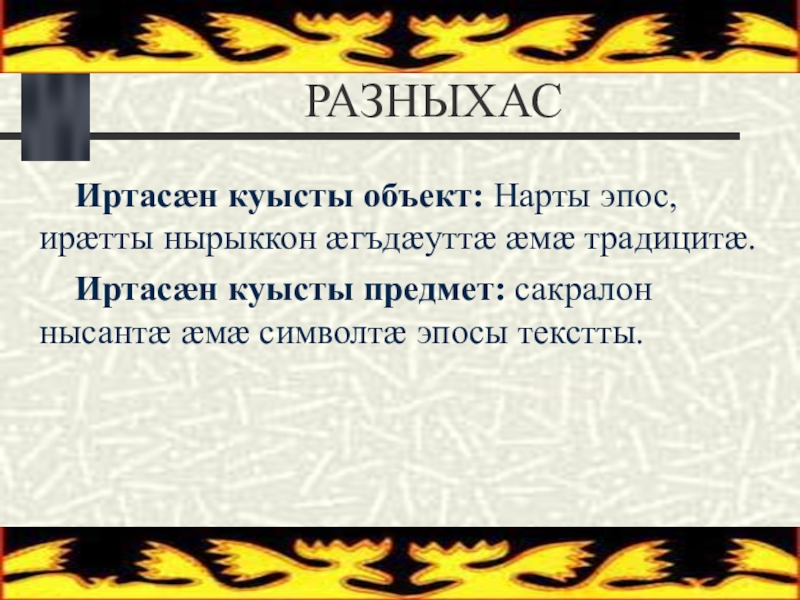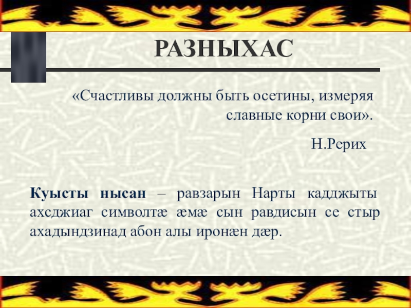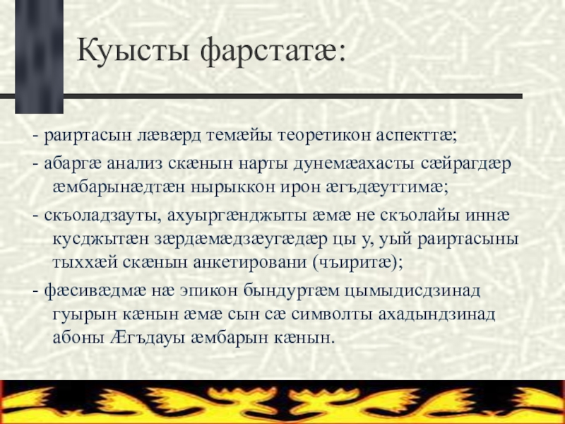 Куысты нысан – равзарын Нарты кадджыты ахсджиаг символтæ æмæ сын равдисын се стыр ахадындзинад абон алы иронæн дæр.