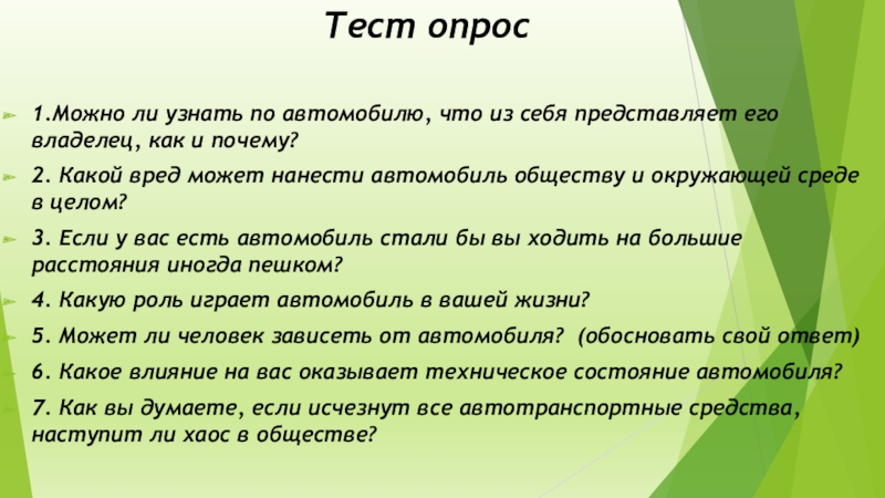 5. Может ли человек зависеть от автомобиля? (обосновать свой ответ)