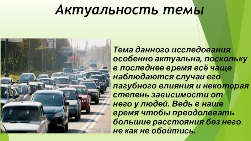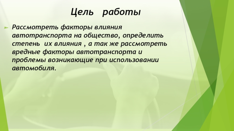Рассмотреть факторы влияния автотранспорта на общество, определить степень их влияния , а так же рассмотреть вредные факторы автотранспорта и проблемы возникающие при использовании автомобиля.