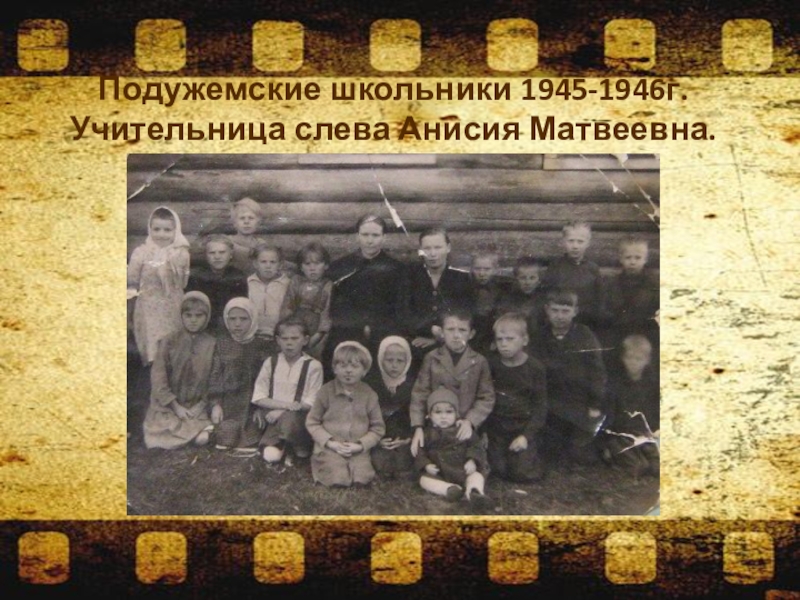 Слайд 27Подужемские школьники 1945-1946г. Учительница слева Анисия Матвеевна.