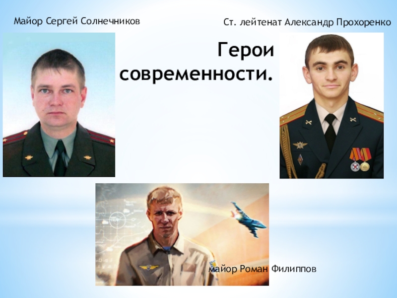 Герои современности.Майор Сергей Солнечниковмайор Роман ФилипповСт. лейтенат Александр Прохоренко
