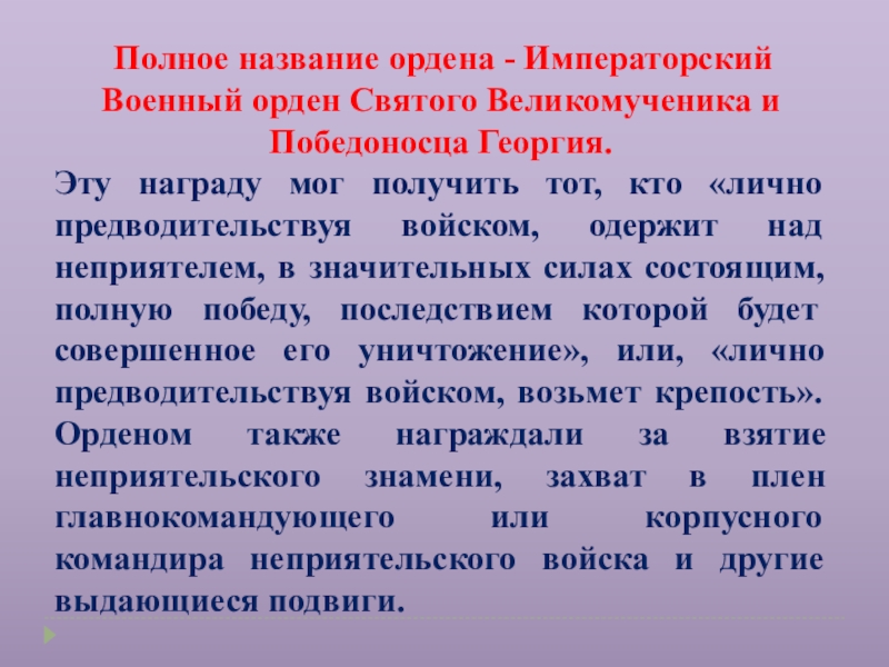 Слайд 10 Полное название ордена - Императорский Военный орден Святого Великомученика и