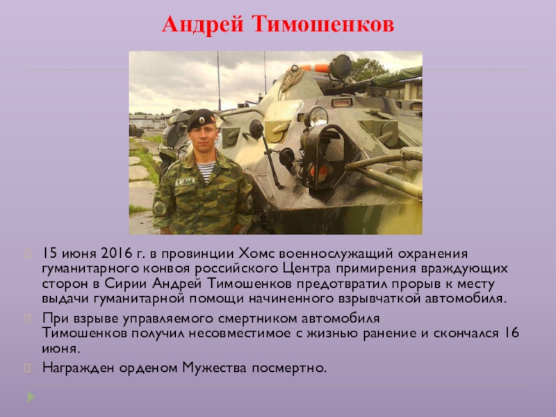 15 июня 2016 г. в провинции Хомс военнослужащий охранения гуманитарного конвоя российского