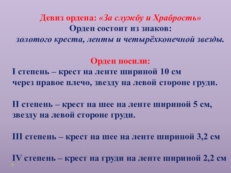 Слайд 12Девиз ордена: «За службу и Храбрость»