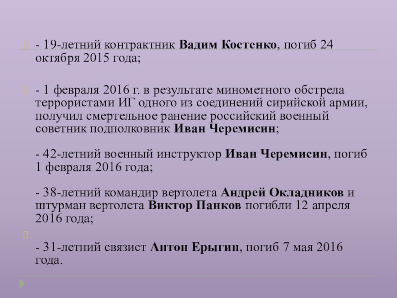 - 42-летний военный инструктор Иван Черемисин, погиб 1 февраля 2016 года;