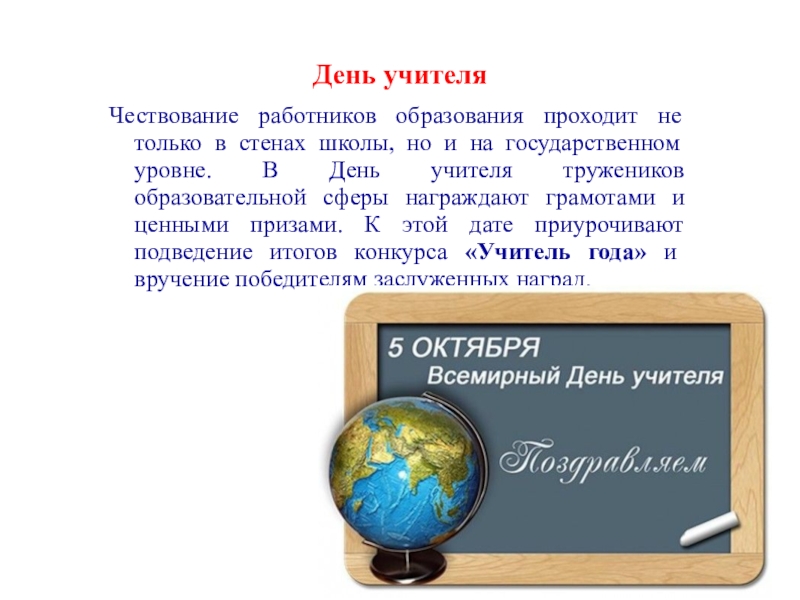 ЮНЕСКО в 1994 году. И с того времени 5 октября во многих странах отмечается национальный День учителя.