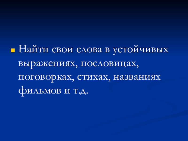 Найти свои слова в устойчивых выражениях, пословицах, поговорках, стихах, названиях фильмов и т.д.