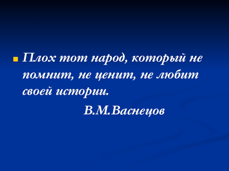 Плох тот народ, который не помнит, не ценит, не любит своей истории.