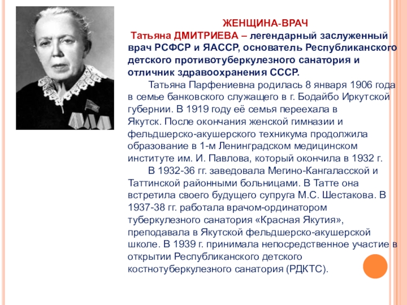 Татьяна ДМИТРИЕВА – легендарный заслуженный врач РСФСР и ЯАССР, основатель Республиканского