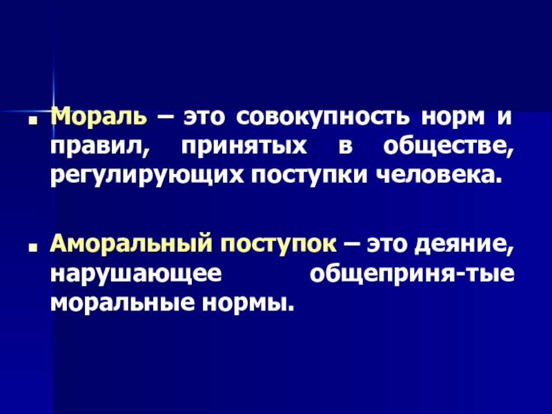 Мораль – это совокупность норм и правил, принятых в обществе, регулирующих