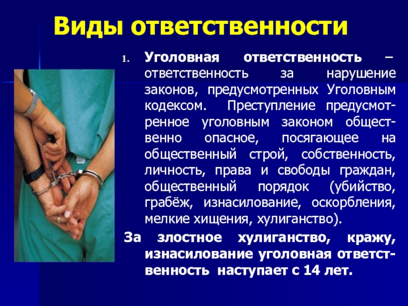Уголовная ответственность – ответственность за нарушение законов, предусмотренных Уголовным