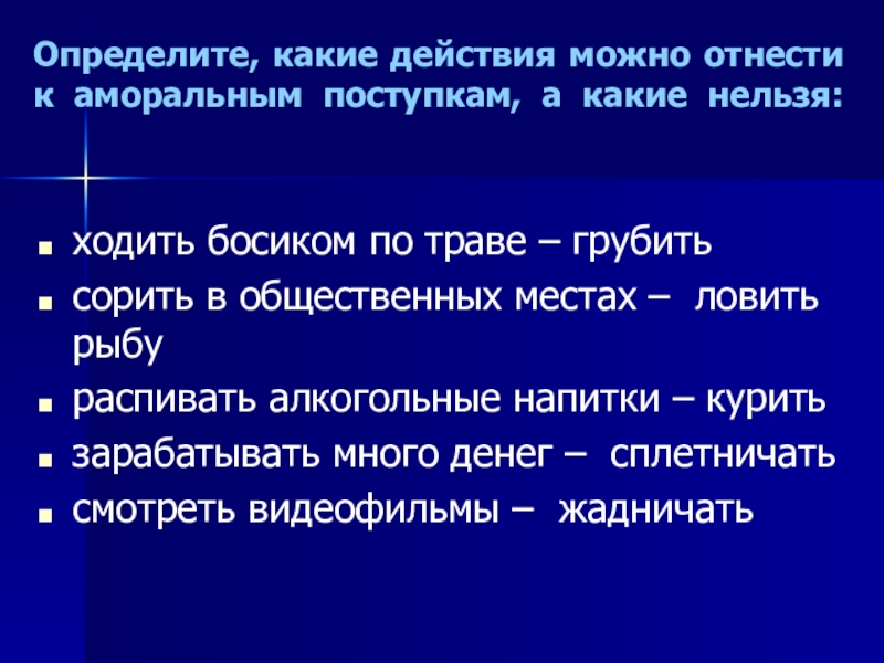 Слайд 8Определите, какие действия можно отнести к аморальным поступкам, а какие нельзя: